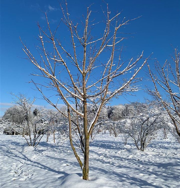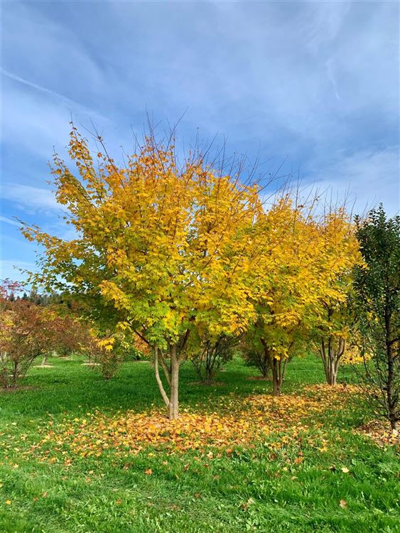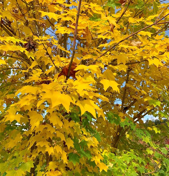 Mit markanten Blättern beschirmen unsere mehrstämmigen Solitäre des Kolchischen Ahorns (Acer cappadocicum 'Rubrum') alle, die es sich unter seiner Krone gemütlich machen. Im Frühling treibt er kräftig rot aus, im Herbst leuchtet er goldgelb - sogar seine Rinde trägt schmucke Streifen. Der Kolchische Ahorn (Acer cappadocicum 'Rubrum') ist als robuster Solitär ein pflegeleichter und robuster Schattenbaum, dem weder Winterkälte noch Sommerhitze etwas ausmachen.