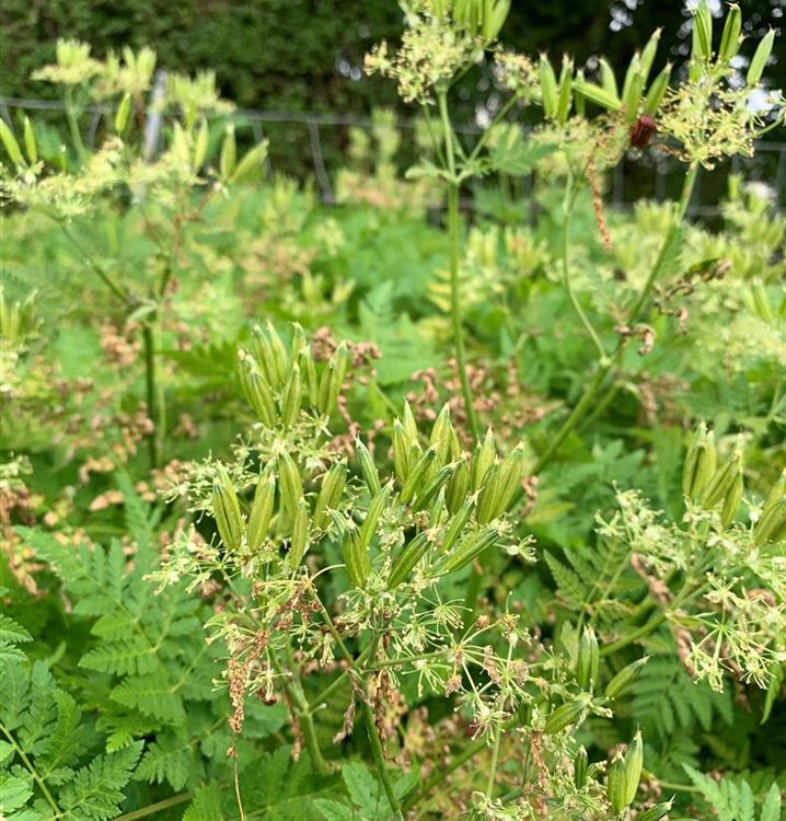 • die Blüten von Myrrhis odorata werden stark von Bienen, Hummeln und Schwebfliegen angeflogen