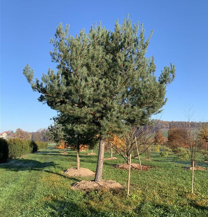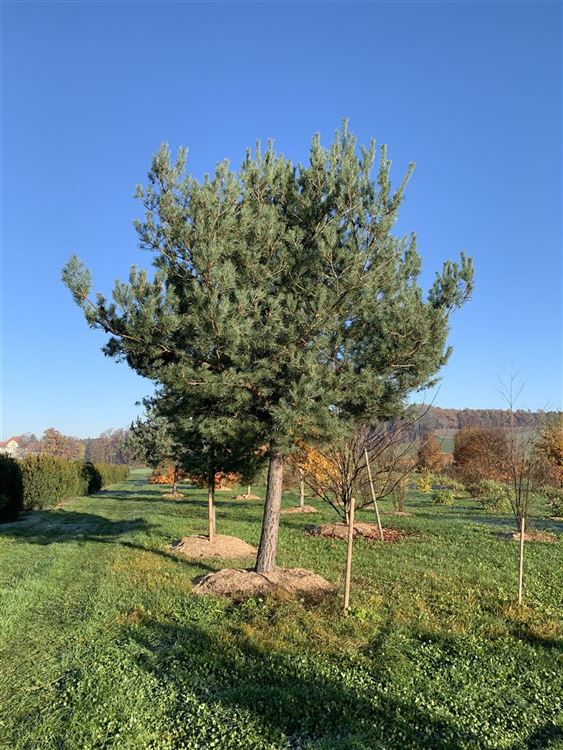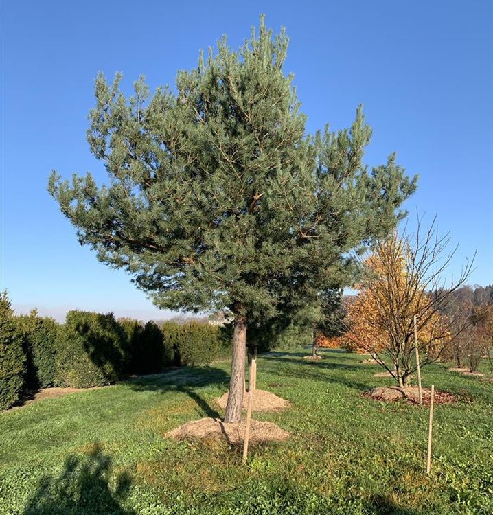 Die Wald-Kiefer (Pinus sylvestris) ist ein Grossbaum, welcher schirmförmig wächst und gewöhnlich eine Höhe von ca. 25 m und eine Breite von ca. 8 m erreicht. Ihre nadelförmigen, gedrehten Blätter haben eine blau-graue Färbung. Dieses Gehölz ist gut frostverträglich. Sie bevorzugt einen sonnigen Standort. An den Boden stellt die Wald-Kiefer keine besonderen Ansprüche.
