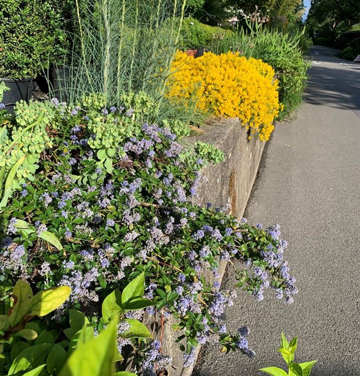 • die Blüten von Ceanothus thyrsiflorus var. repens werden stark von Bienen, Hummeln und Schwebfliegen angeflogen