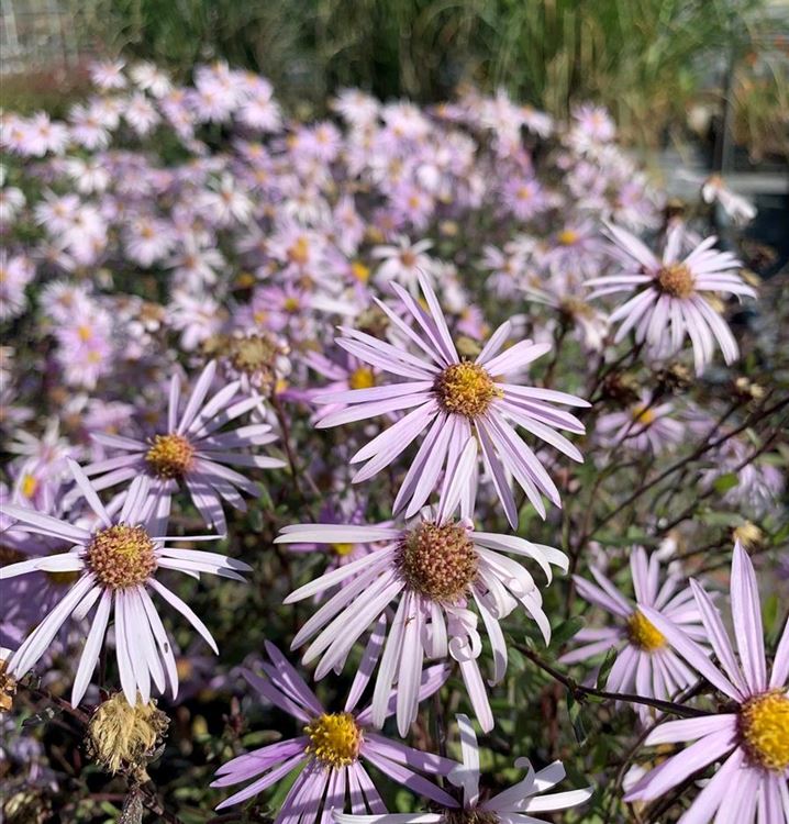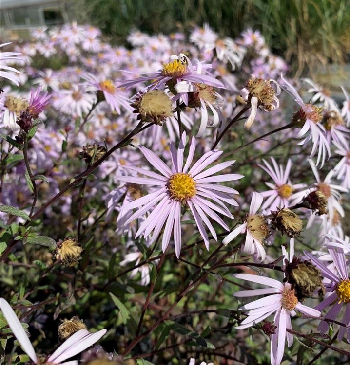 • die Blüten von Aster pyrenaeus 'Lutetia' werden stark von Bienen, Hummeln und Schwebfliegen angeflogen