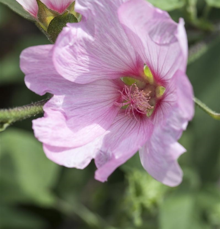 • die Blüten von Lavatera 'Barnsley' werden stark von Bienen, Hummeln und Schwebfliegen angeflogen