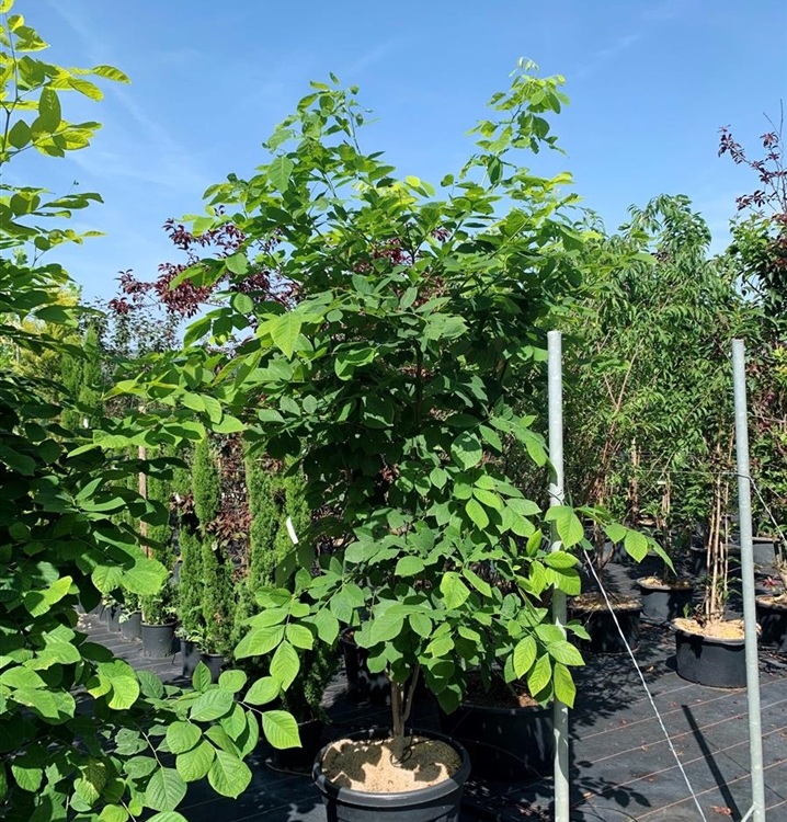 Der Gelbholzbaum (Cladrastis kentukea) entwickelt sich zu einem mehrstämmigen Solitärbaum, der mit seinen üppigen Blättern grosszügigen Schatten wirft. Hitze und Trockenheit hält er sehr gut aus, die weissen Blüten werden von Bienen beflogen!