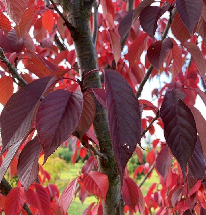 Die Japanische Nelkenkirsche 'Royal Burgundy'® (Prunus serrulata) ist ein ausladender, trichterförmiger Grossstrauch mit dekorativen Früchten. Die rosafarbenen Blüten erscheinen von Ende April bis Anfang Mai. Zudem trägt die Japanische Nelkenkirsche 'Royal Burgundy'® dekorative, sommergrüne, eiförmige, purpurrote Blätter.