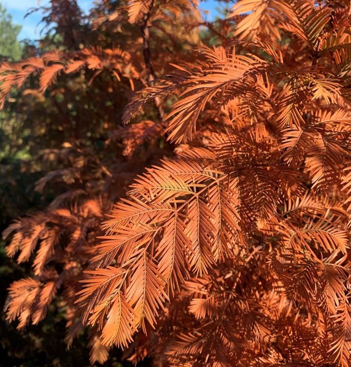 Das Chinesische Rotholz (Metasequoia glyptostroboides) ist ein Grossbaum, welcher kegelförmig wächst und gewöhnlich eine Höhe von ca. 40 m und eine Breite von ca. 10 m erreicht. Seine nadelförmigen Blätter haben eine mittelgrüne Färbung. Sie verwandeln sich im Herbst in ein leuchtendes Kupferbraun oder Gelb-rot. Dieses Gehölz ist gut frostverträglich. Es bevorzugt humosen Boden in sonniger bis halbschattiger Lage.