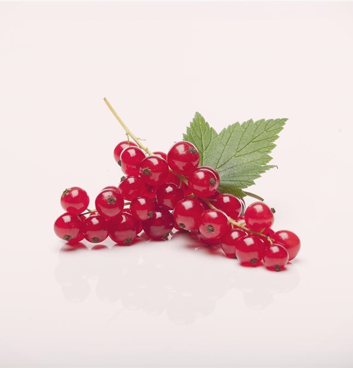 Die Johannisbeere 'Rovada' (Ribes rubrum) bildet hellrote, grosse Beeren. Diese sind fest und süss-säuerlich im Geschmack. Für eine ertragreiche Ernte ab Juli schaffen durchlässiger, nährstoffreicher Boden und ein sonniger bis halbschattiger Standort optimale Bedingungen. Auch ihre grünen Blüten sind eine schöne Erscheinung.