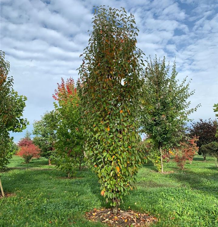 Schlank und stabil wächst der Wollapfel (Malus tschonoskii), perfekt geeignet für naturnahe Gärten oder als eleganter Solitärbaum. Die Blätter und jungen Triebe des Wollapfels (Malus tschonoskii) sind flaumig und weich, mit silbrigweissem Fell. Die offene Blüte wird von verschiedenen Insekten beflogen, die Früchte von Vögeln und anderen Tieren verspeist. Bei Bedarf kann er geschnitten werden, doch auch ohne Korrekturen macht er eine fantastische Figur.