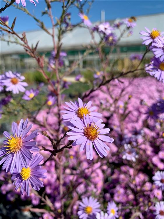 • die Blüten von Aster laevis werden stark von Bienen, Hummeln und Schwebfliegen angeflogen