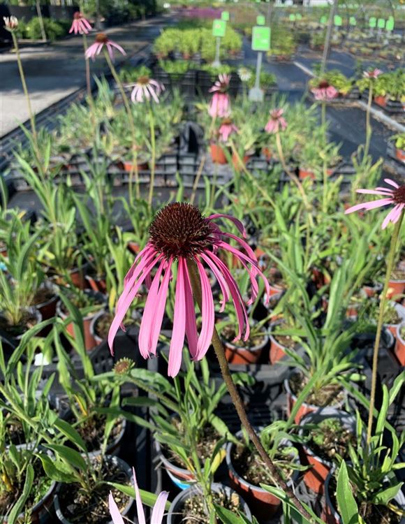 • die Blüten von Echinacea pallida werden stark von Bienen, Hummeln und Schwebfliegen angeflogen