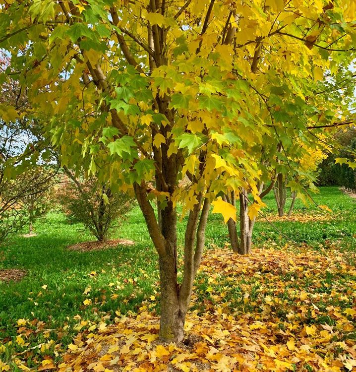 Mit markanten Blättern beschirmen unsere mehrstämmigen Solitäre des Kolchischen Ahorns (Acer cappadocicum 'Rubrum') alle, die es sich unter seiner Krone gemütlich machen. Im Frühling treibt er kräftig rot aus, im Herbst leuchtet er goldgelb - sogar seine Rinde trägt schmucke Streifen. Der Kolchische Ahorn (Acer cappadocicum 'Rubrum') ist als robuster Solitär ein pflegeleichter und robuster Schattenbaum, dem weder Winterkälte noch Sommerhitze etwas ausmachen.