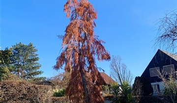 Ein Bart von einem Baum! Die Sumpfzypresse (Taxodium distichum 'Cascade Falls') Nr. 443 steht mit einer anmutigen, entspannten Statur gute 5 Meter in die Lüfte! Elegant fliessen Laub und Äste an ihren Seiten herab und wiegen sich im Wind. Fast erahnt man diesen Abkämmling der alten Ents entspannt dahinschreiten, auf einem Spaziergang durch die Wälder...