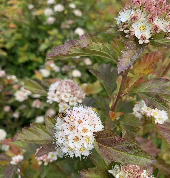 • die Blüten von Physocarpus opulifolius 'Amber Jubilee'<sup>®</sup> werden stark von Bienen und Schwebfliegen angeflogen