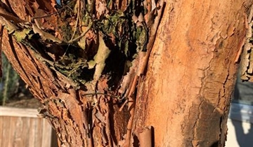 • rot-braune, zimtartig abblätternde Rinde