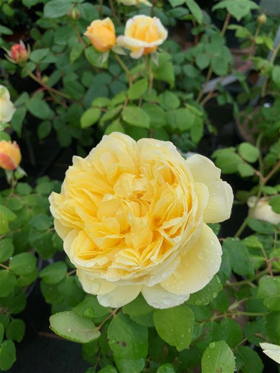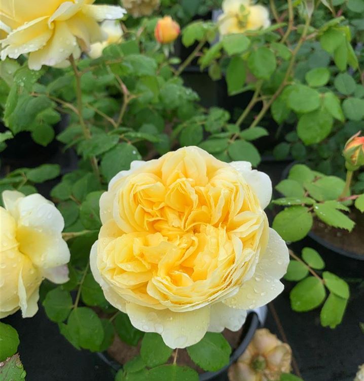 Die Strauchrose 'Charles Darwin'® (Rosa) ist eine reichblühende Rose, die im Garten aber auch auf Balkon oder Terrasse eine besondere Rolle spielt. Die zahlreichen starkgefüllten Blüten sind gelb und erscheinen von Juni bis Oktober. Ihr wunderbarer Duft entfaltet sich besonders an sonnigen, warmen Tagen. Mit dem aufrechten Wuchs wird dieses Gehölz bis zu 1,2 m hoch und 1 m breit.