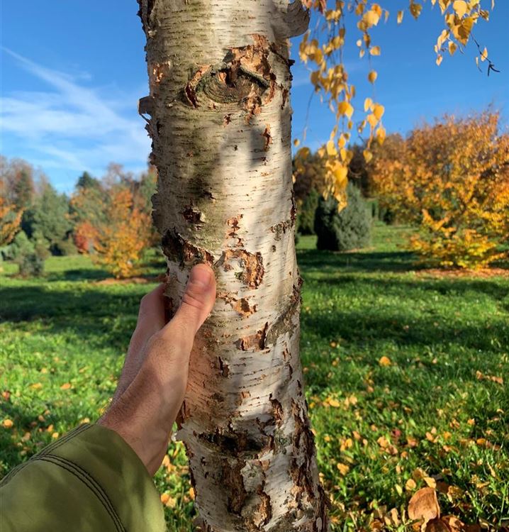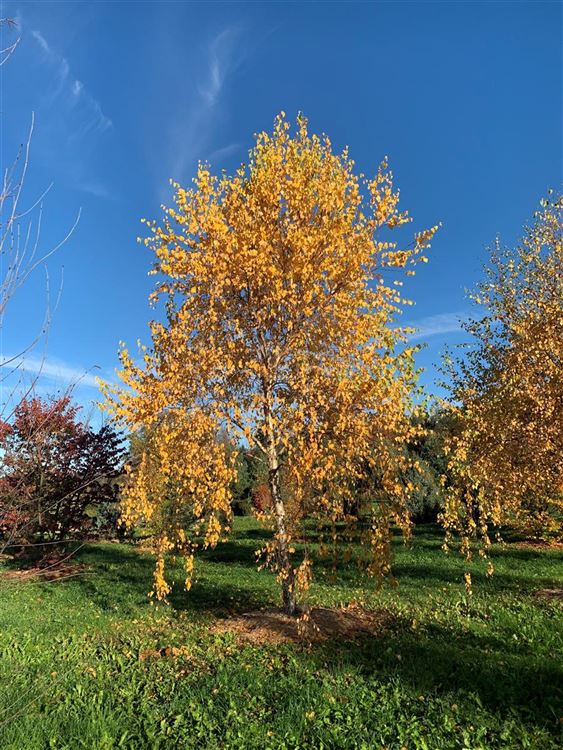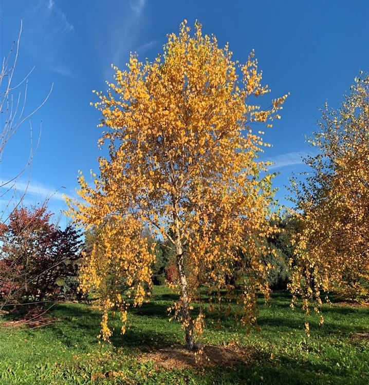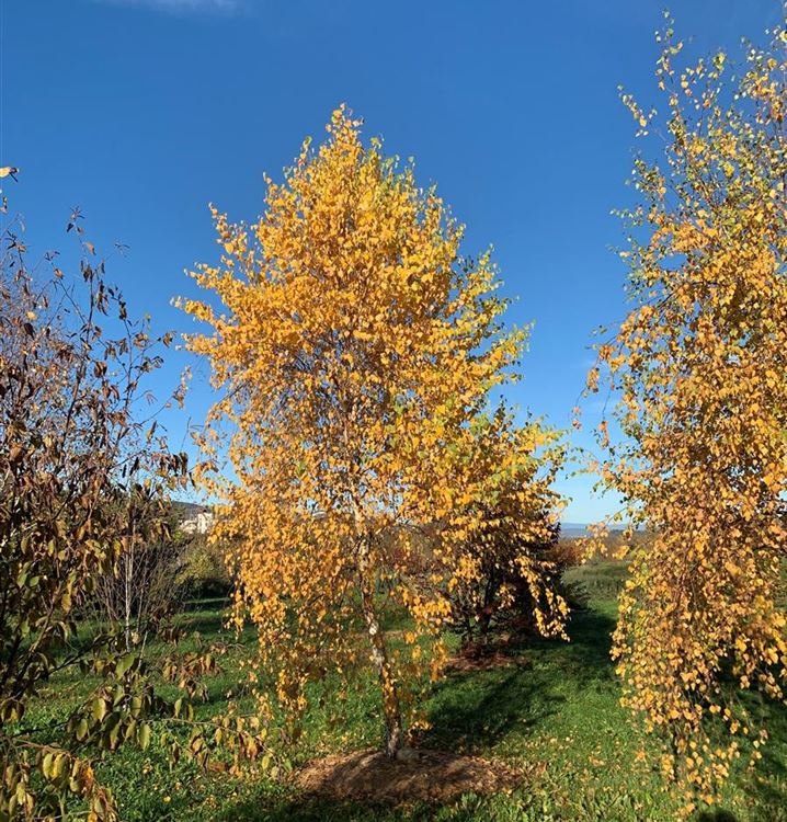 Die Sandbirke (Betula pendula) ein eigenwilliger, überhängender, malerischer Grossbaum. Ihre Rinde ist weiss und abrollend. An einem sonnigen Standort erreicht sie gewöhnlich eine Höhe von ca. 25 m und wird ca. 12 m breit. An den Boden stellt die Sandbirke vorallem einen Anspruch: Wasser. Obwohl die Betula pendula auch eine Pionierpflanze ist, mag sie für ein langes Leben einen eher feuchten und nicht zu kargen Standort. Auf kaum einem anderen Baum tummeln sich so viele Insekten wie auf der Birke, sie ist also ein sehr wertvoller Baum!