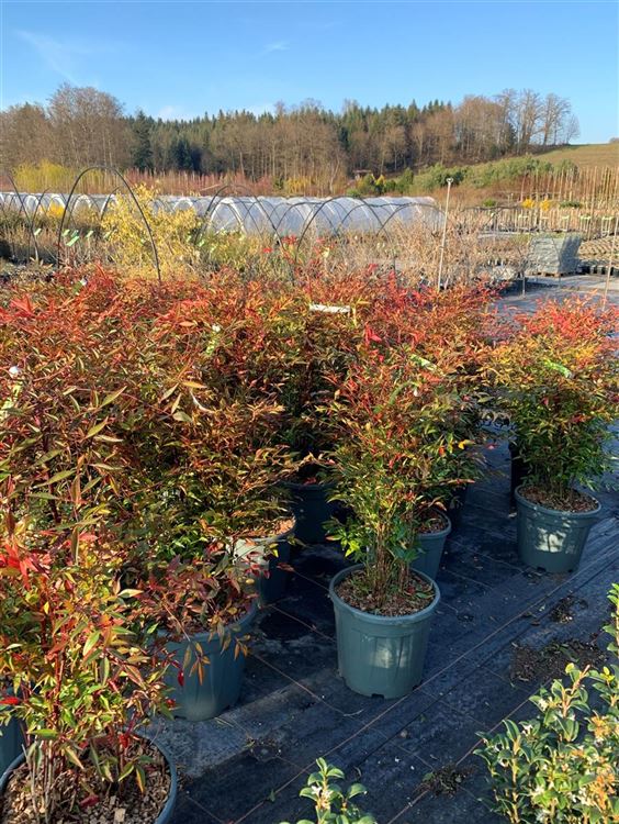 Ein lebendiger, bunter, immergrüner Strauch: Die Nandina domestica ist ein unkompliziertes, vieltriebiges Gehölz. Ausgepflanzt oder im Gefäss verschönert die Nandina - von sonnigen bis schattigen Standorten - jede Gartenecke.