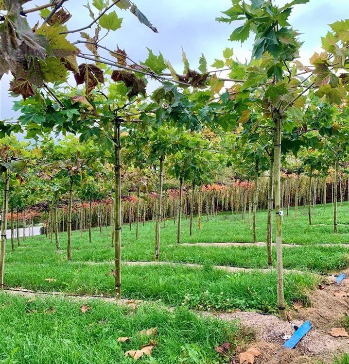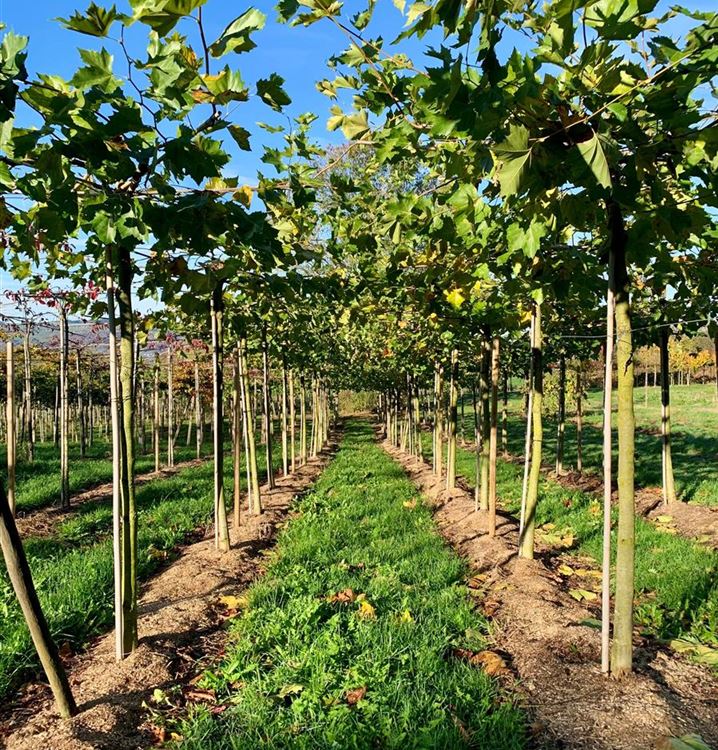 Für den schnellen Schatten: Die Platane ist ein Grossbaum, der als dachform erzogen und geschnitten werden kann. Sie wächst oft mehrere Meter pro Jahr und nimmt sehr schnell an Durchmesser und Grösse zu, und liefert mit ihren riesigen Blättern sofort Schatten. Die dachförmige Platane ist aufgrund ihres Wuchs-Tempos ein Baum für grössere Gärten, wo ihre Form duch alljährliches Zurückschneiden erhalten und gefördert wird. Ausserdem ist die Platane allgemein einer der robustesten Bäume für die Schweiz!