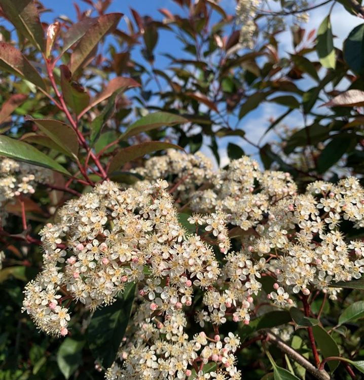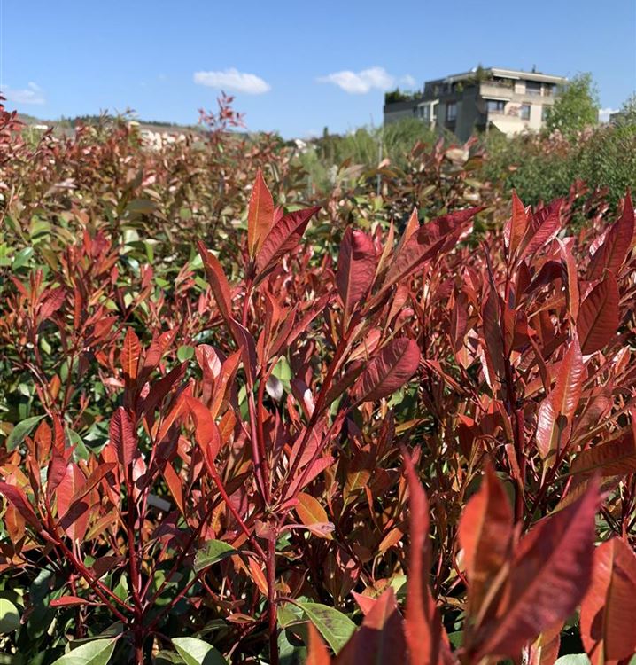 Ein der besten, immergrünen Heckenpflanzen, die besonders durch ihren feuerroten Austrieb begeistert! Wird die Photini x fraseri 0Red Robin0 im Sommer geschnitten, treibt Sie in der Regel nochmal aus und die rote Färbung freut erneut.