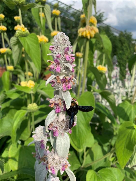 • die Blüten von Stachys byzantina werden stark von Insekten beflogen