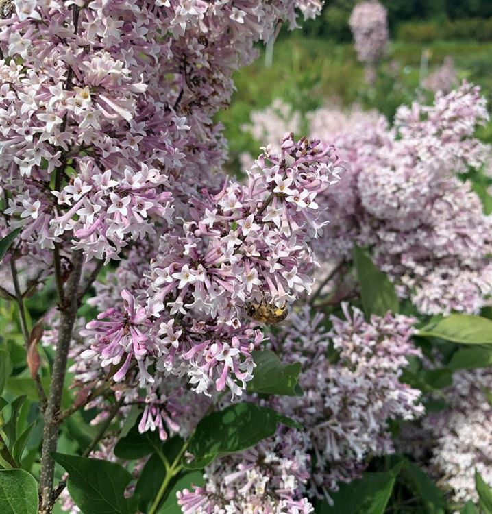 • die Blüten von Syringa microphylla 'Superba' werden stark von Bienen, Hummeln und Schwebfliegen angeflogen