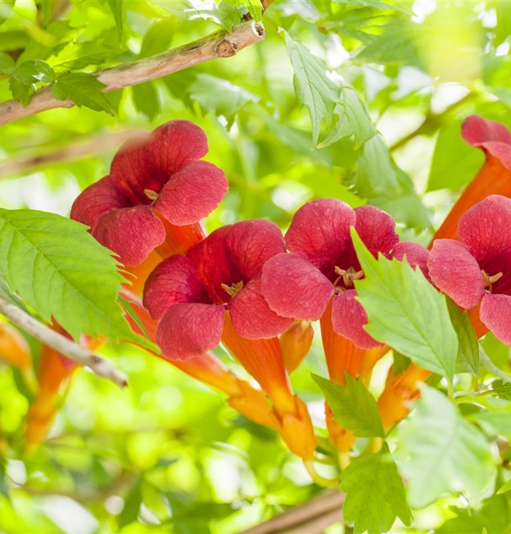 • die Blüten von Campsis x tagliabuana 'Madame Galen' werden stark von Bienen, Hummeln und Schwebfliegen angeflogen