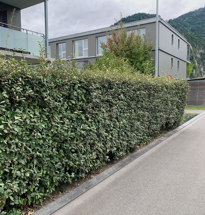 • Immergrüner Sichtschutzstrauch, 2–3 m hoch