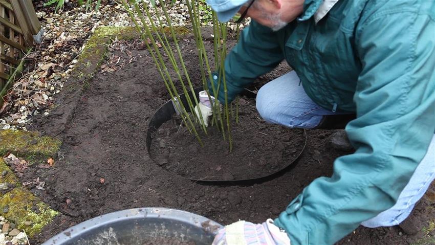 Beim Pflanzen ausserhalb von Kübeln sind Rhizomsperren zu empfehlen, damit der Bambus nicht über kurz oder lang den gesamten Garten überwuchert. Diese kann aus Folie bestehen, die jedoch relativ dick und stabil sein sollte. Diese lässt sich nach Bedarf anpassen, damit die Hecke eine besondere Gestalt annimmt.