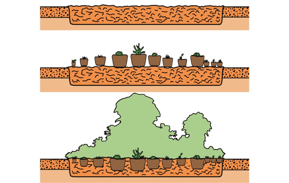7. Stauden so tief setzen, dass der Ballen leicht mit Erde überdeckt wer-den kann.